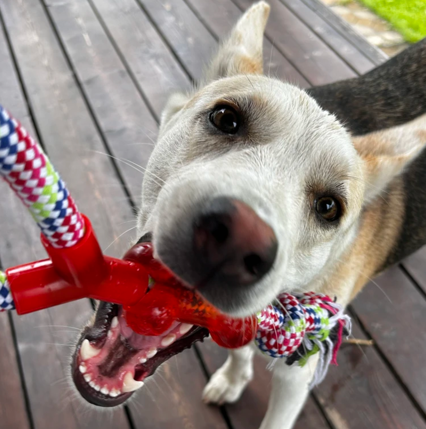 Очень понравился этот набор! Круто придумали продавать наборами, так выходит дешевле, а разгрызть канат плевое дело! Все игрушки качетсвенные и интересные, яркие, красивые. В таком красивом мешочке пришли!