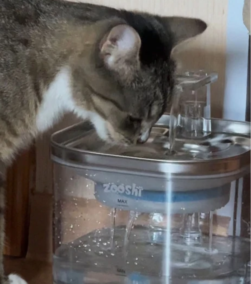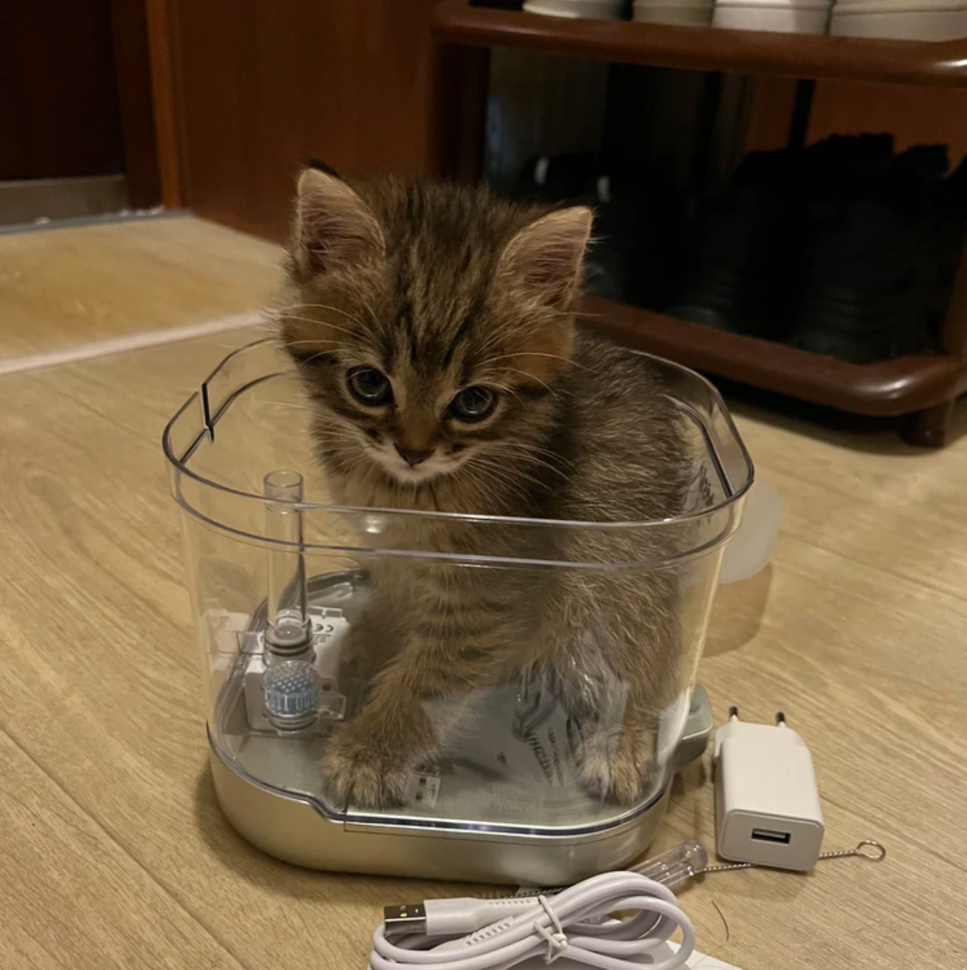 Котенок наконец-то начал больше пить водички. Фонтанчик сразу привлек его внимание еще до сборки)