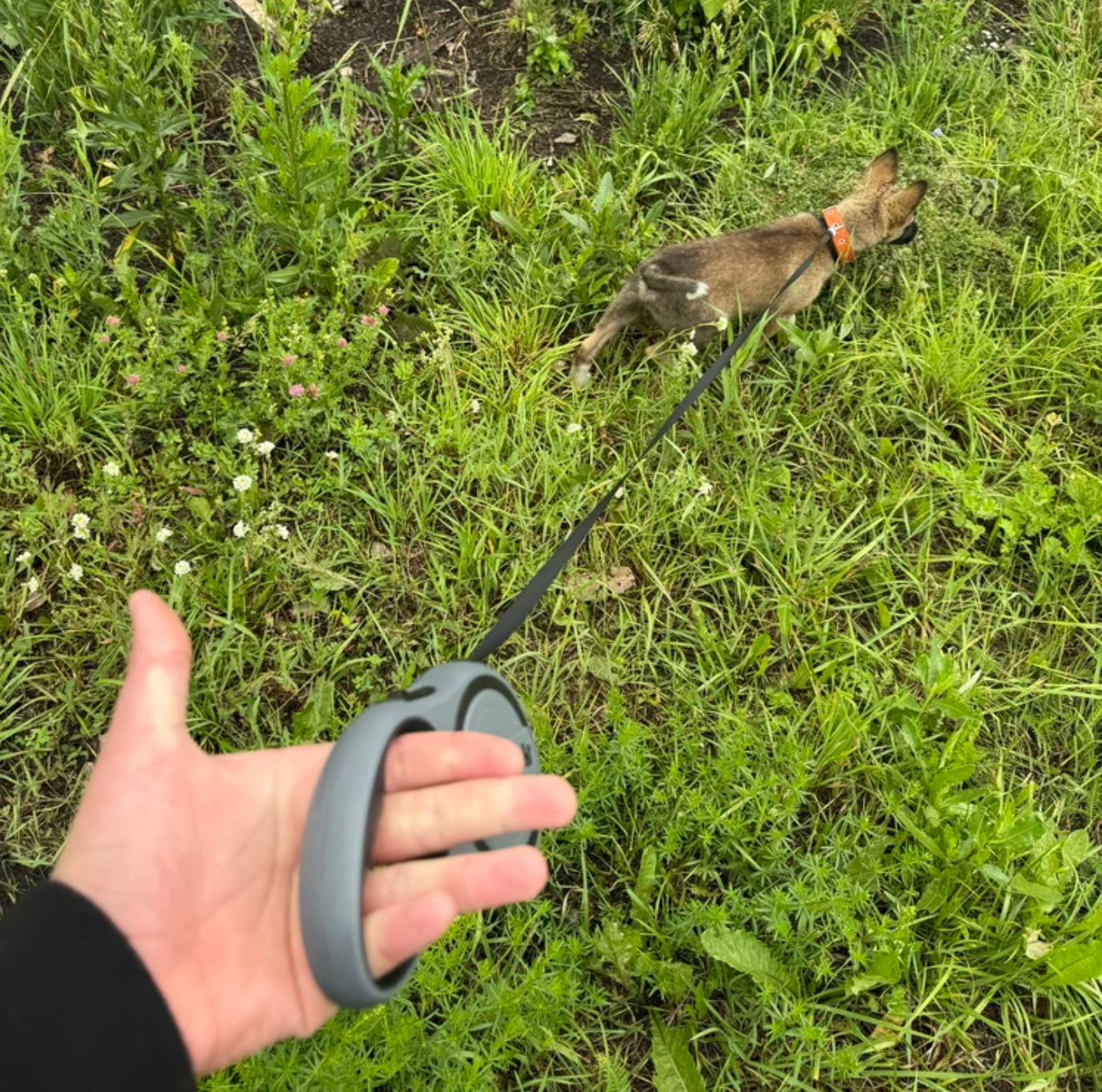 Из моментов, на которые стоит обратить внимание, это что лента полностью убирается в катушку. В плане хранения очень удобно, ничего не болтается, а если ходить на коротком поводке, придерживая рукой, то не очень удобно. Но в общем, за эти деньги очень прилично все! Нам очень понравилось. Рекомендуем!
